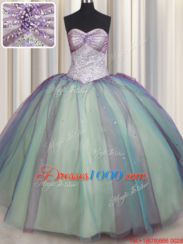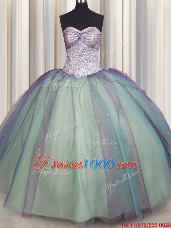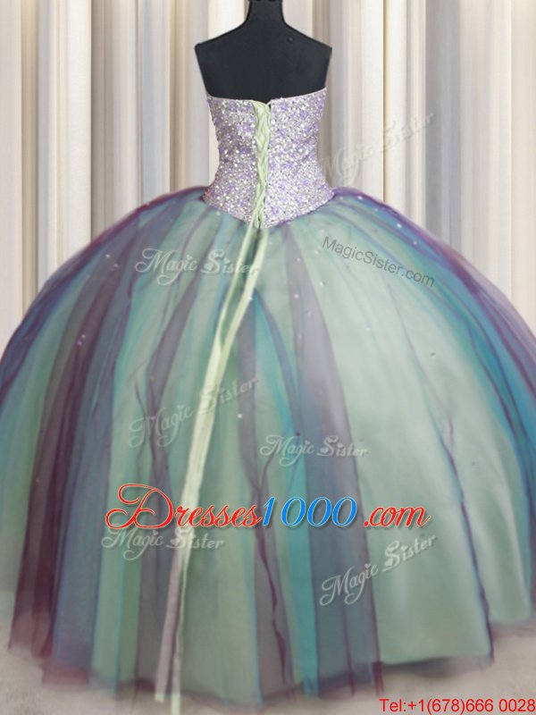 Pretty Multi-color Tulle Lace Up Quinceanera Gown Sleeveless Floor Length Beading and Sequins