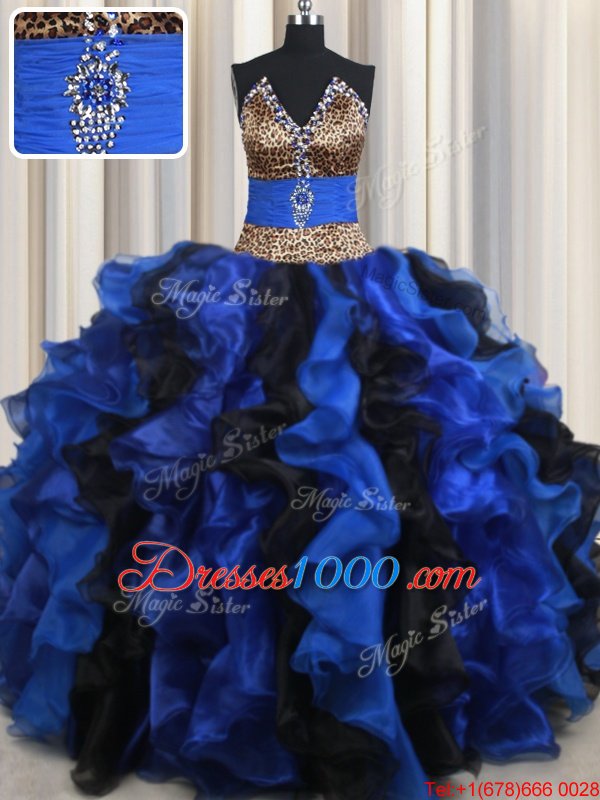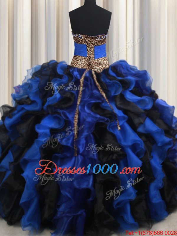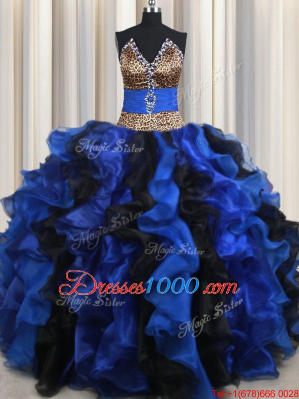 Organza Sleeveless Floor Length Sweet 16 Dresses and Beading and Ruffles