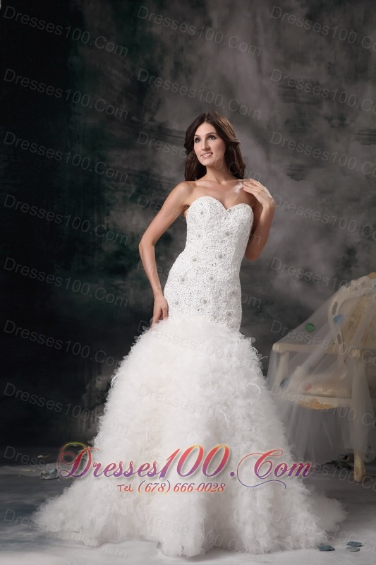 Mermaid Sweetheart Bridal Dresses Feather Beading
