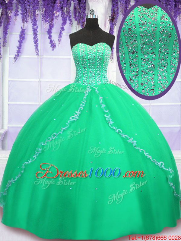 Chic Tulle Sweetheart Sleeveless Lace Up Beading and Sequins Quinceanera Gown in Green
