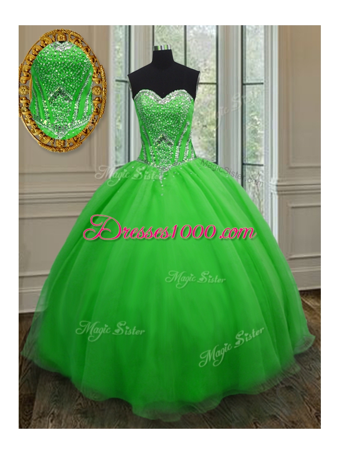 Sleeveless Floor Length Beading and Belt Lace Up 15 Quinceanera Dress