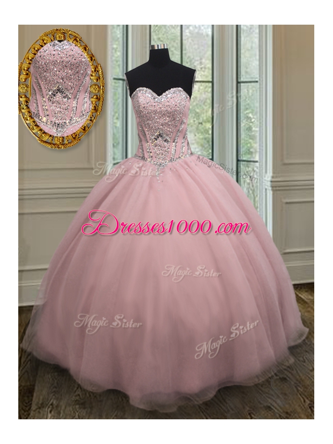 Organza Sweetheart Sleeveless Lace Up Beading and Belt Sweet 16 Dress in Baby Pink