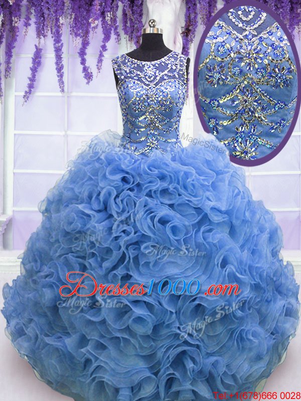 Organza Strapless Sleeveless Lace Up Embroidery and Ruffles 15th Birthday Dress in Orange
