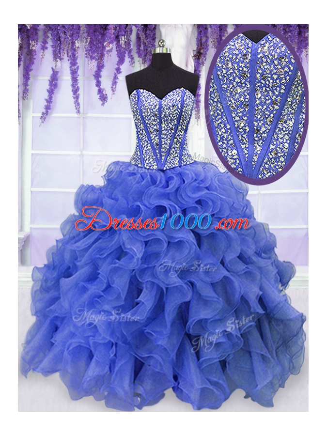 Sexy Beading and Ruffles 15 Quinceanera Dress Royal Blue Lace Up Sleeveless Floor Length