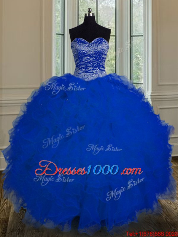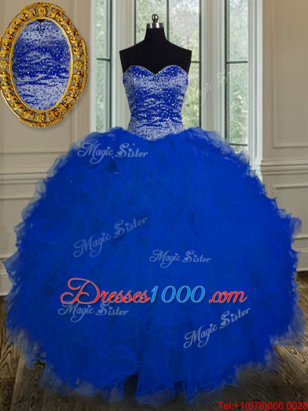 Tulle Scoop Sleeveless Lace Up Beading and Ruffles Sweet 16 Dresses in Baby Blue