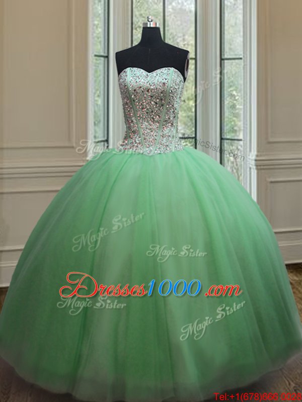 Glittering Floor Length Ball Gowns Sleeveless Quinceanera Dresses Lace Up