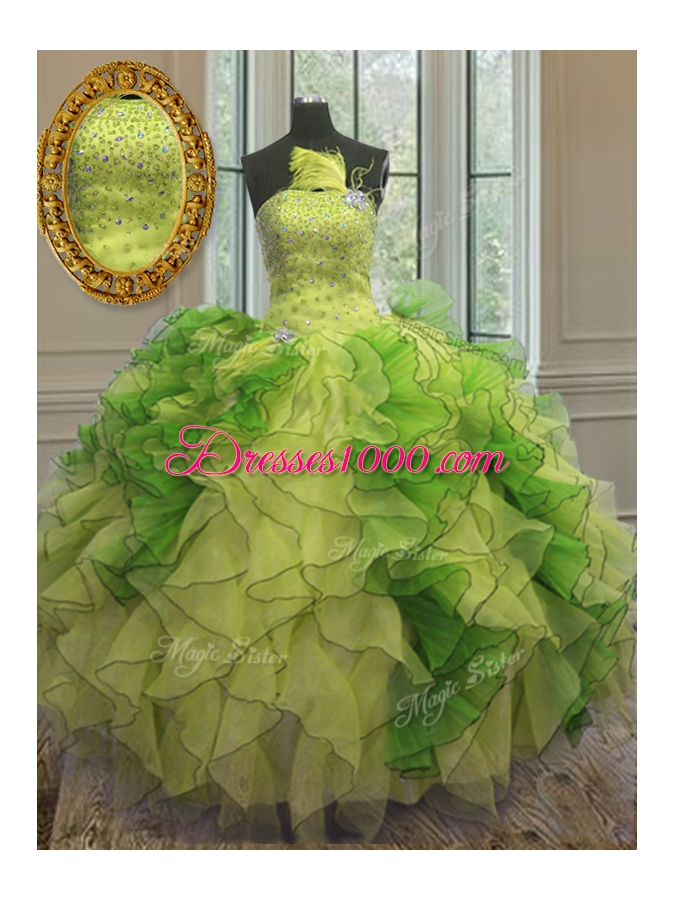 Multi-color Strapless Lace Up Beading and Ruffles Quinceanera Gowns Sleeveless