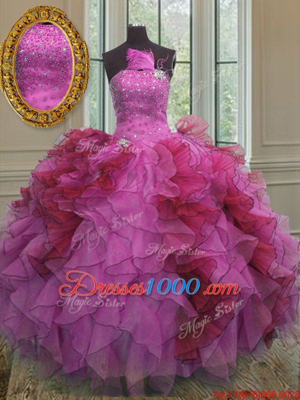 Affordable Multi-color Quinceanera Gown Military Ball and Sweet 16 and Quinceanera and For with Ruffles and Sequins Strapless Sleeveless Lace Up