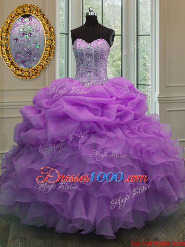 Suitable Sleeveless Lace Up Floor Length Beading and Ruffles Quinceanera Gowns
