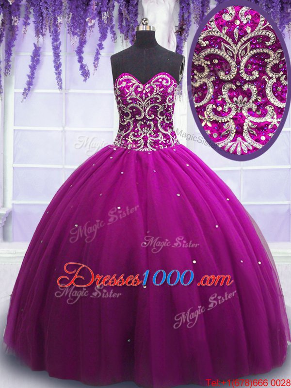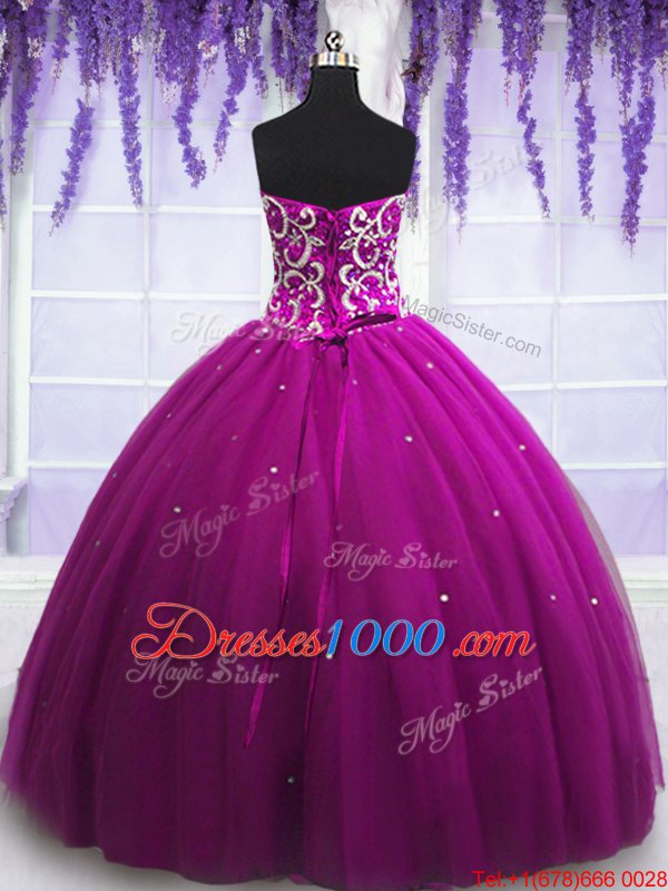 Lilac Tulle Lace Up Sweetheart Sleeveless Floor Length Ball Gown Prom Dress Beading