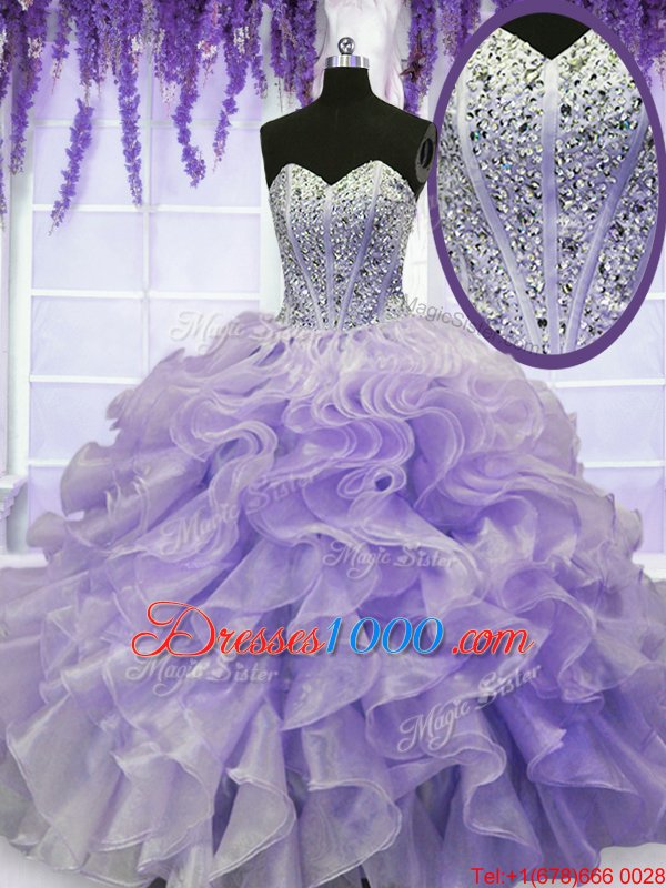 New Arrival Lavender Sleeveless Beading and Ruffles Floor Length Quinceanera Dresses