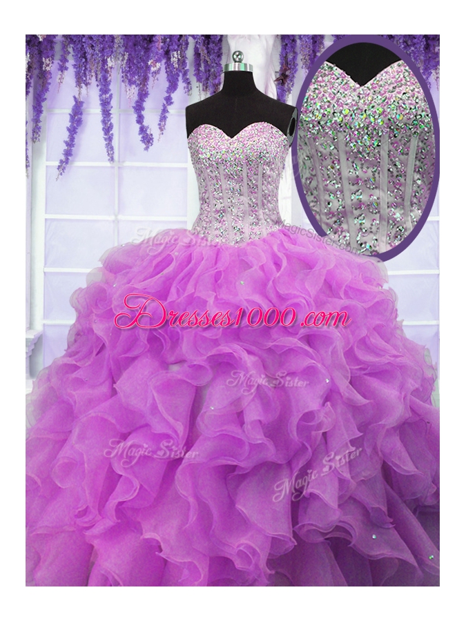 Fuchsia Lace Up Sweetheart Ruffles Quinceanera Gowns Organza Sleeveless