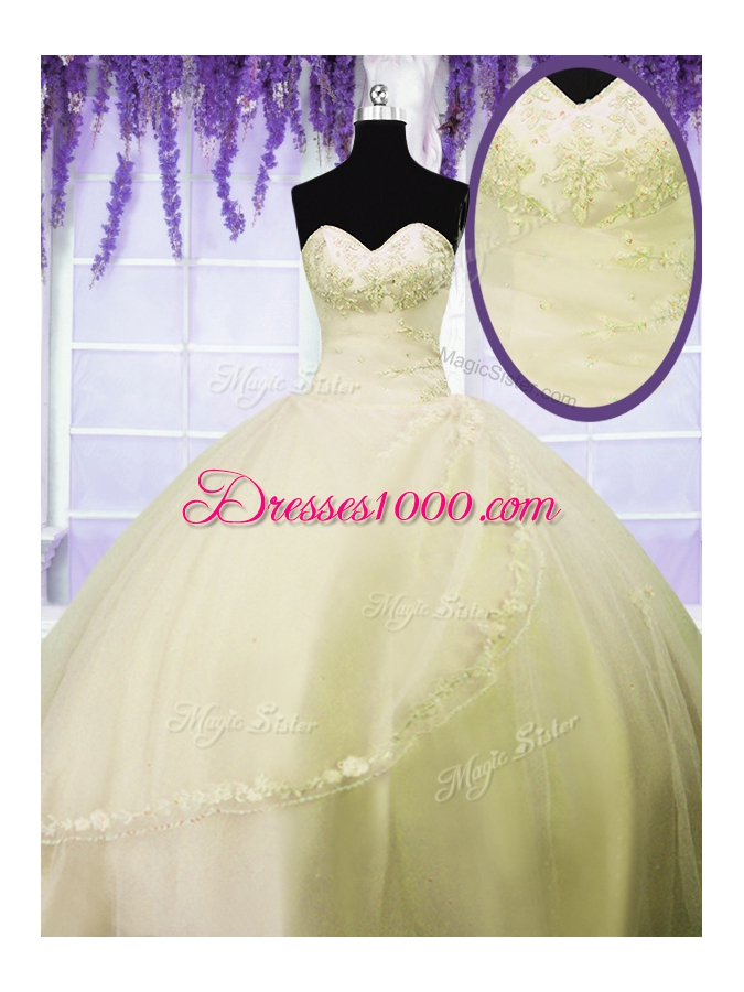 Sleeveless Lace Up Floor Length Appliques Quince Ball Gowns