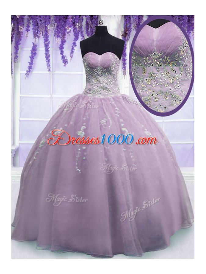 Chic Ball Gowns Sweet 16 Quinceanera Dress Lilac Sweetheart Organza Sleeveless Floor Length Zipper