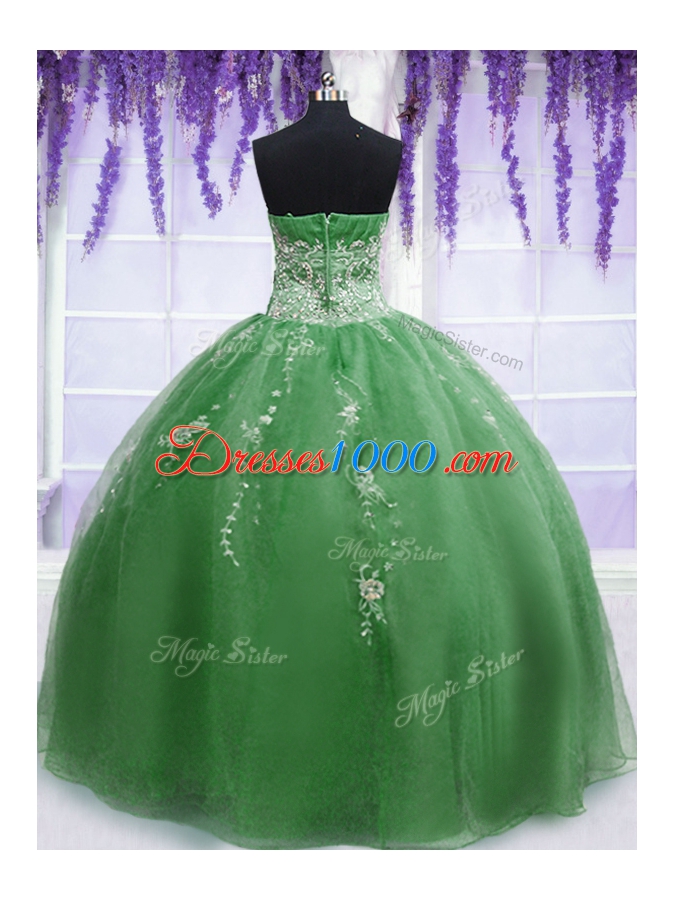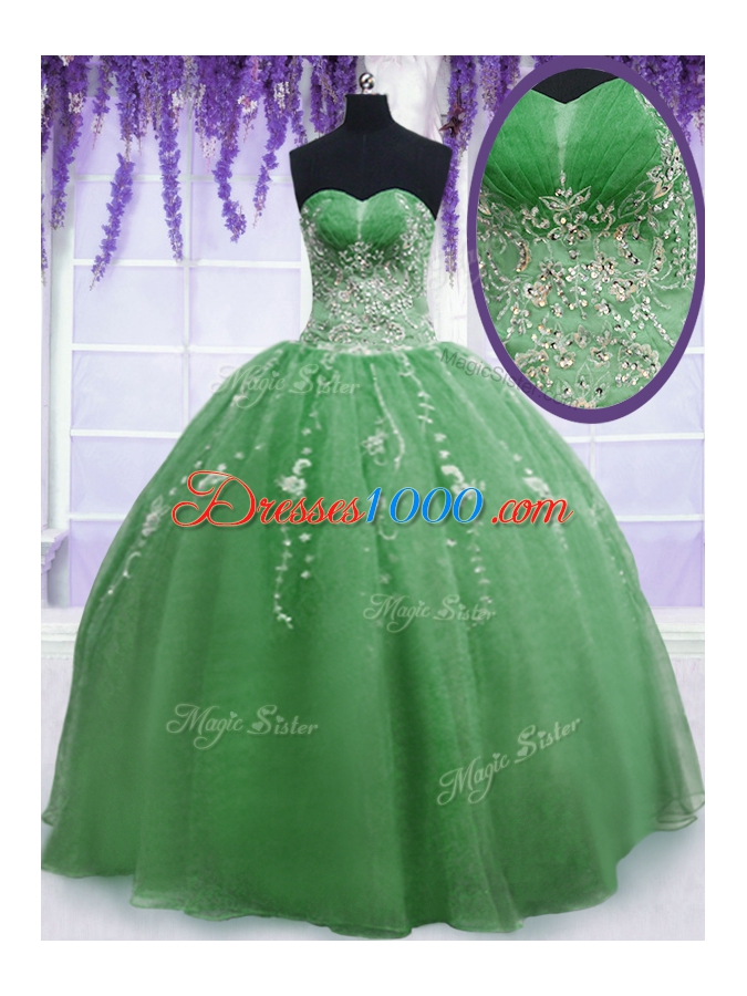 Trendy Floor Length Green Sweet 16 Quinceanera Dress Organza Sleeveless Beading