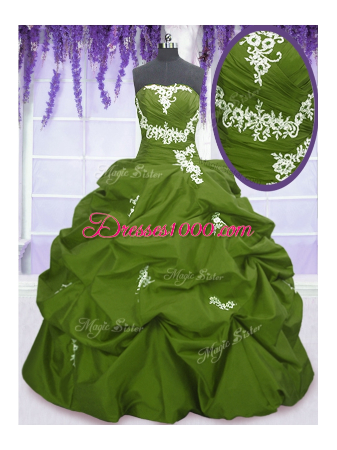 Taffeta Sleeveless Floor Length Quinceanera Gowns and Appliques and Pick Ups
