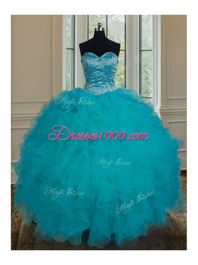 Stylish Sleeveless Lace Up Floor Length Beading and Ruffles Ball Gown Prom Dress