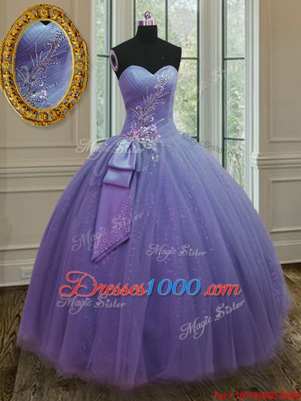 Lavender Sleeveless Tulle and Sequined Lace Up 15 Quinceanera Dress for Military Ball and Sweet 16