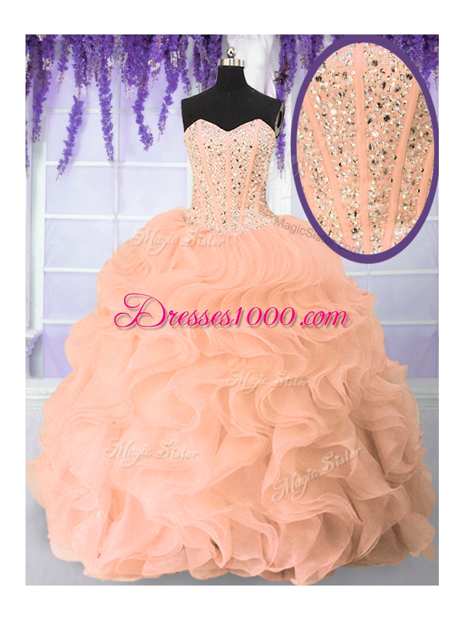 Custom Fit Organza Sleeveless Floor Length Quinceanera Gown and Beading and Ruffles