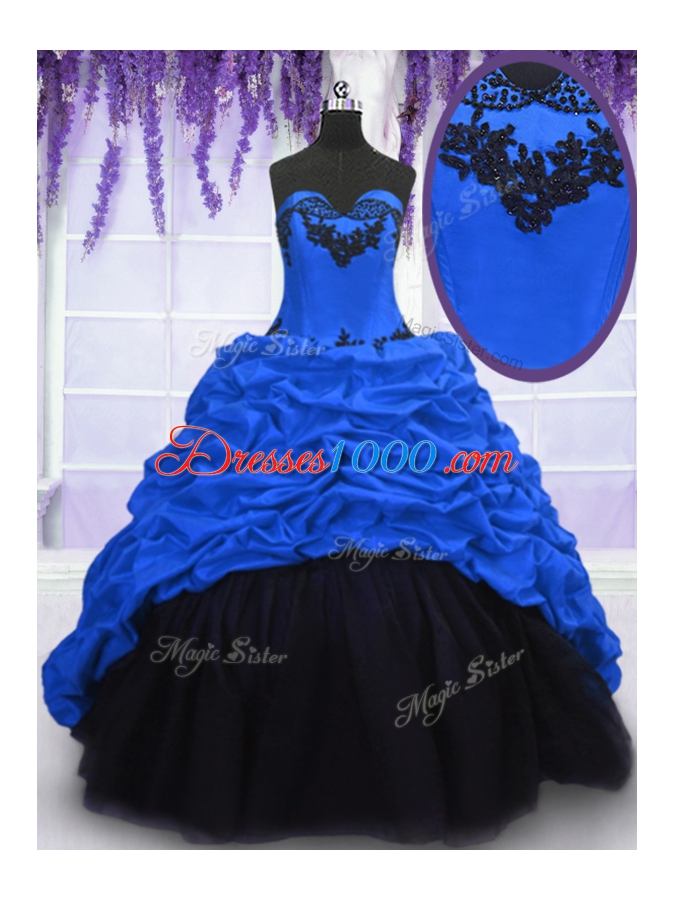 Pick Ups With Train Royal Blue Quinceanera Dresses Sweetheart Sleeveless Sweep Train Lace Up