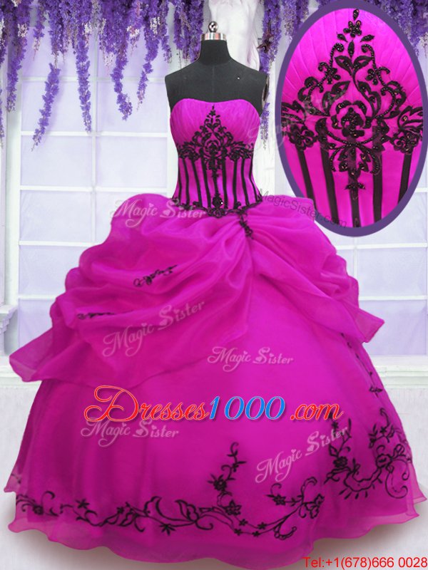 Eye-catching Strapless Sleeveless Organza Sweet 16 Dresses Embroidery and Pick Ups Lace Up