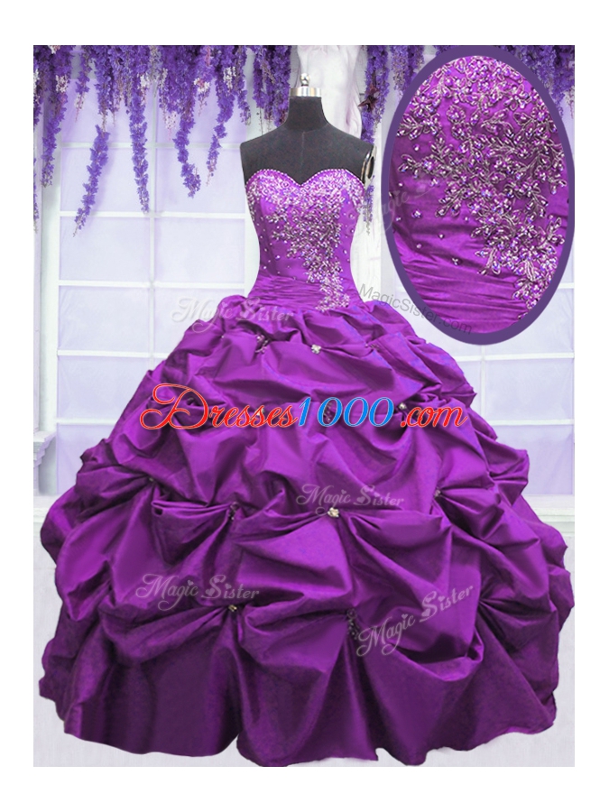 Decent Purple Lace Up Sweetheart Appliques and Pick Ups Quinceanera Dress Taffeta Sleeveless