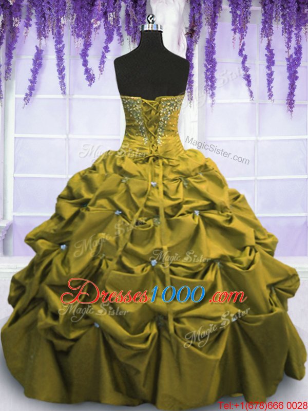 Fitting Brown Taffeta Lace Up 15 Quinceanera Dress Sleeveless Floor Length Beading and Appliques and Pick Ups