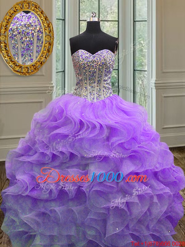 Floor Length Lavender Vestidos de Quinceanera Sweetheart Sleeveless Lace Up