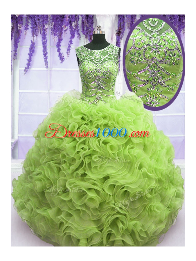 Inexpensive Scoop Sleeveless Organza Quinceanera Gown Beading and Ruffles Lace Up