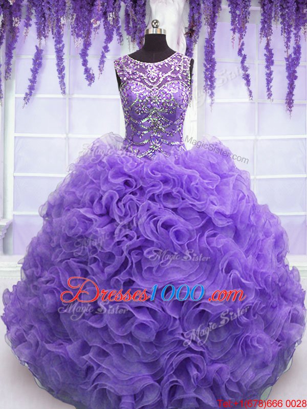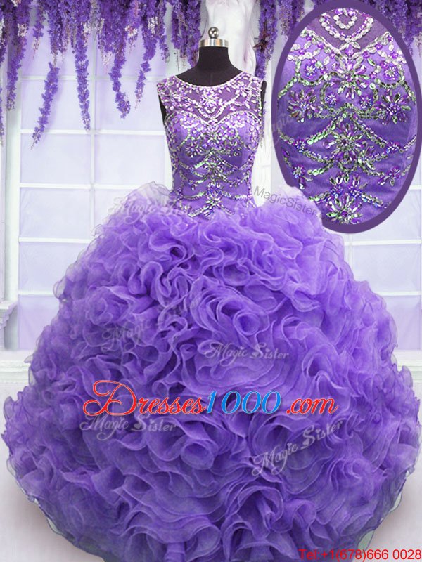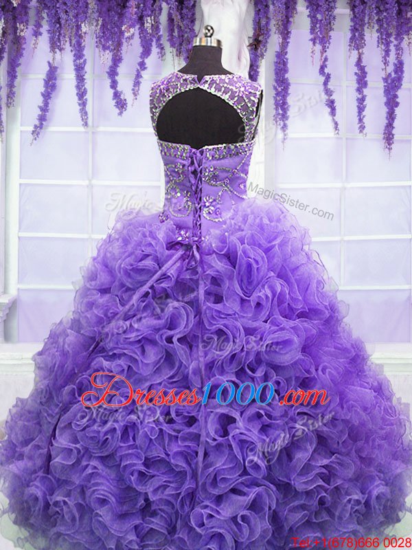 Beauteous Floor Length Lavender Quinceanera Dresses Scoop Sleeveless Lace Up