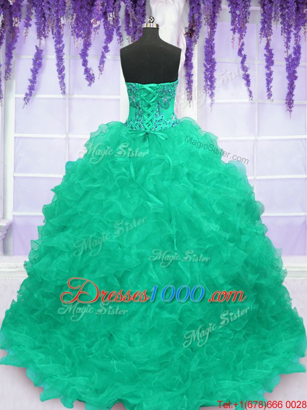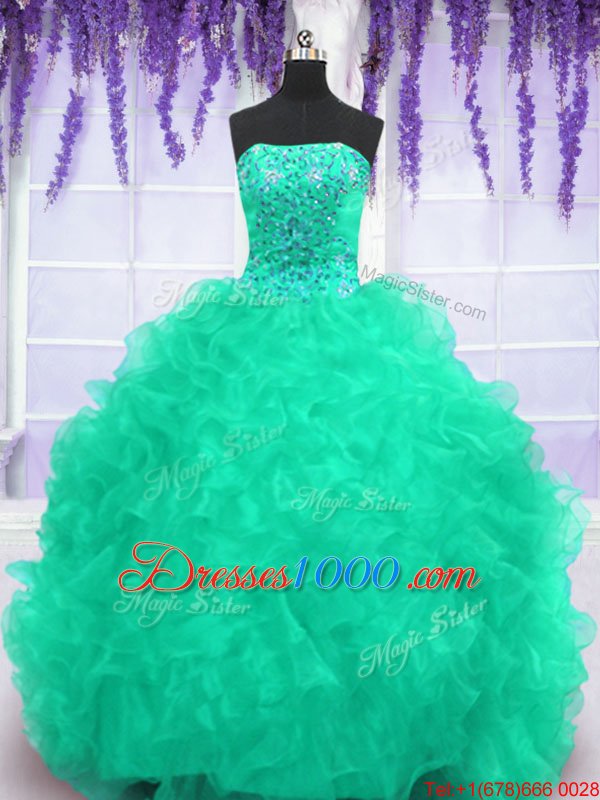 Sophisticated Brush Train Ball Gowns 15 Quinceanera Dress Turquoise Strapless Organza Sleeveless With Train Lace Up