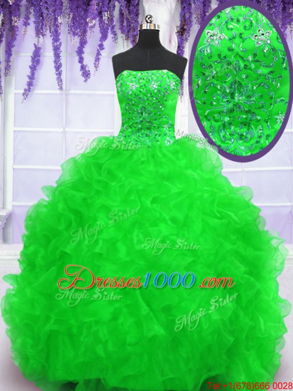 Cheap Sleeveless Organza With Brush Train Lace Up Vestidos de Quinceanera in for with Beading and Appliques and Ruffles