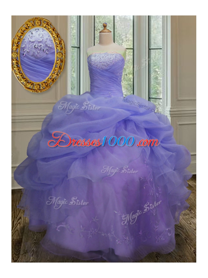 Customized Floor Length Lace Up 15 Quinceanera Dress Lavender and In for Military Ball and Sweet 16 and Quinceanera with Embroidery and Pick Ups