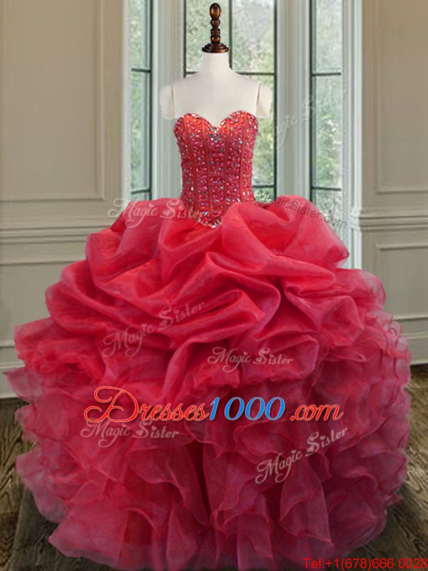 Sleeveless Lace Up Floor Length Beading and Ruffles 15th Birthday Dress