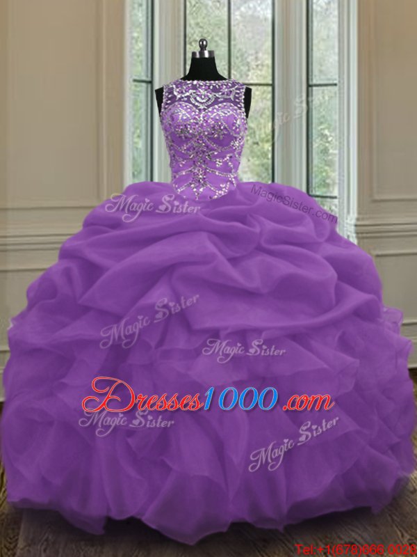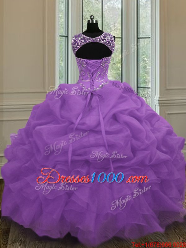Charming Purple Scoop Lace Up Beading and Pick Ups Quinceanera Dresses Sleeveless