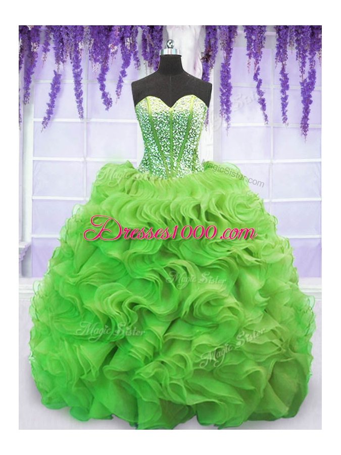 Ball Gowns Organza Sweetheart Sleeveless Beading and Ruffles Lace Up Sweet 16 Dresses Sweep Train