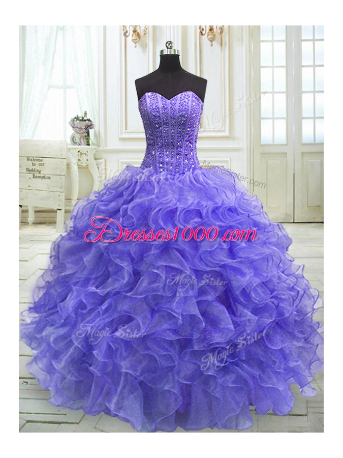 Lovely Purple Vestidos de Quinceanera Military Ball and Sweet 16 and Quinceanera and For with Beading and Ruffles Sweetheart Sleeveless Lace Up