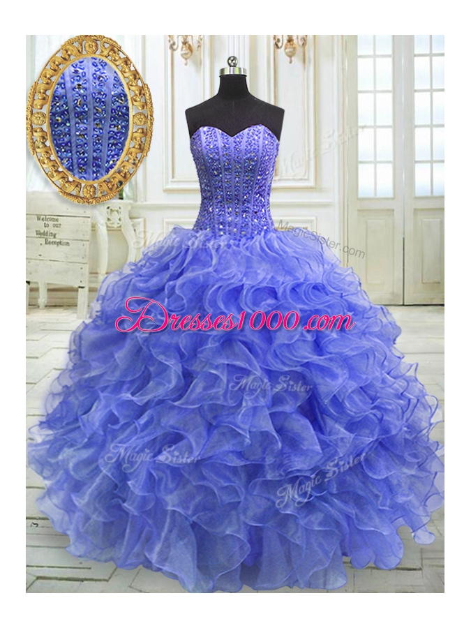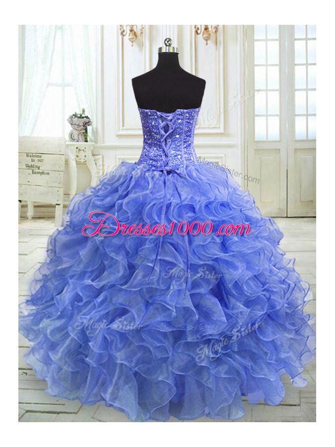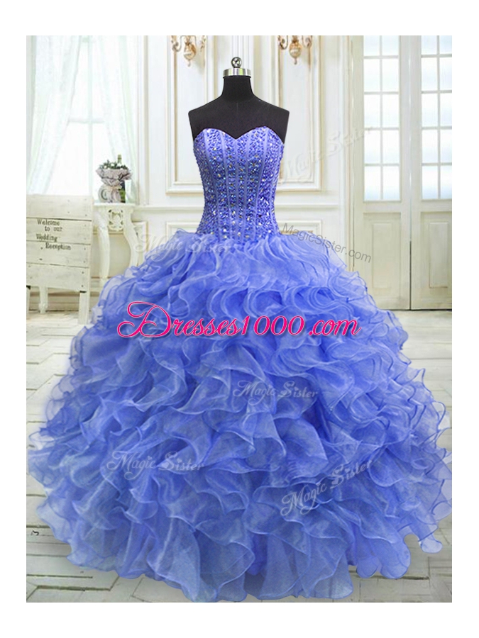 Attractive Blue Lace Up Quinceanera Gowns Beading and Ruffles Sleeveless Floor Length