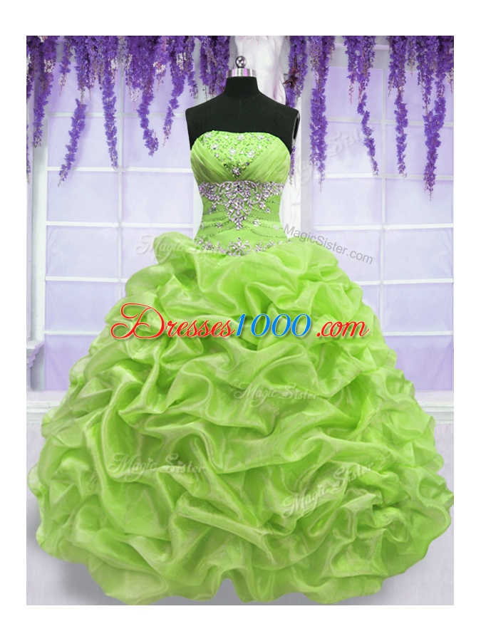 Yellow Green Sleeveless Floor Length Beading and Pick Ups Lace Up 15th Birthday Dress