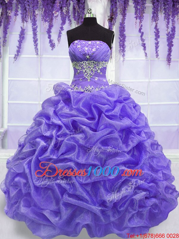 New Arrival Lavender Ball Gowns Beading Quinceanera Dress Lace Up Organza Sleeveless Floor Length