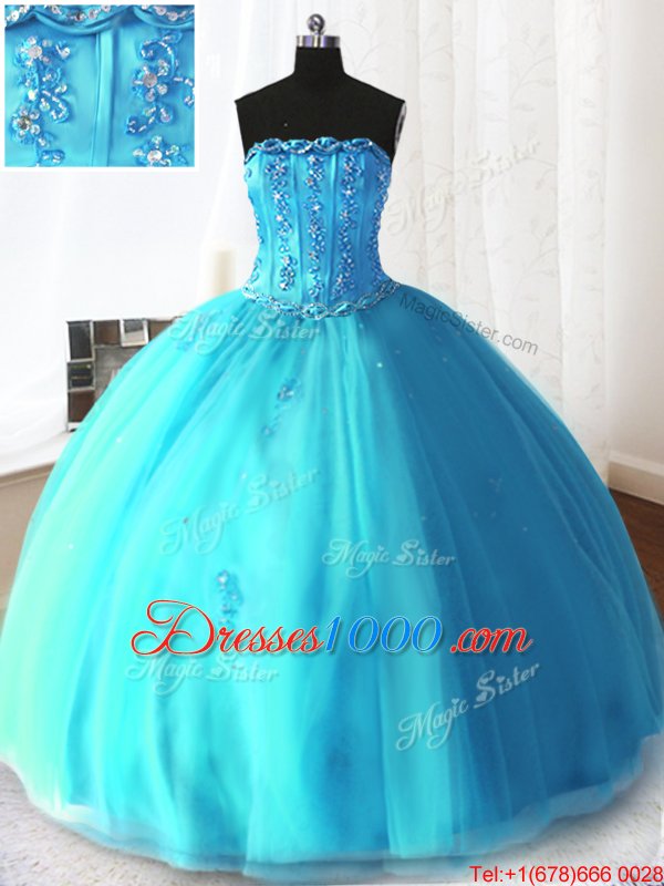 Graceful Floor Length Ball Gowns Sleeveless Baby Blue Quinceanera Dresses Lace Up