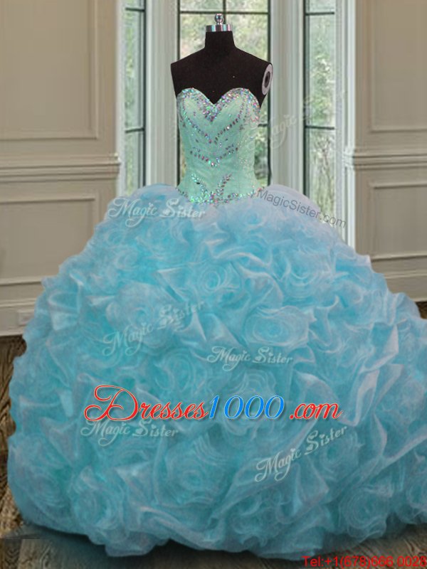 Blue Sweetheart Neckline Beading and Pick Ups Sweet 16 Dresses Sleeveless Lace Up