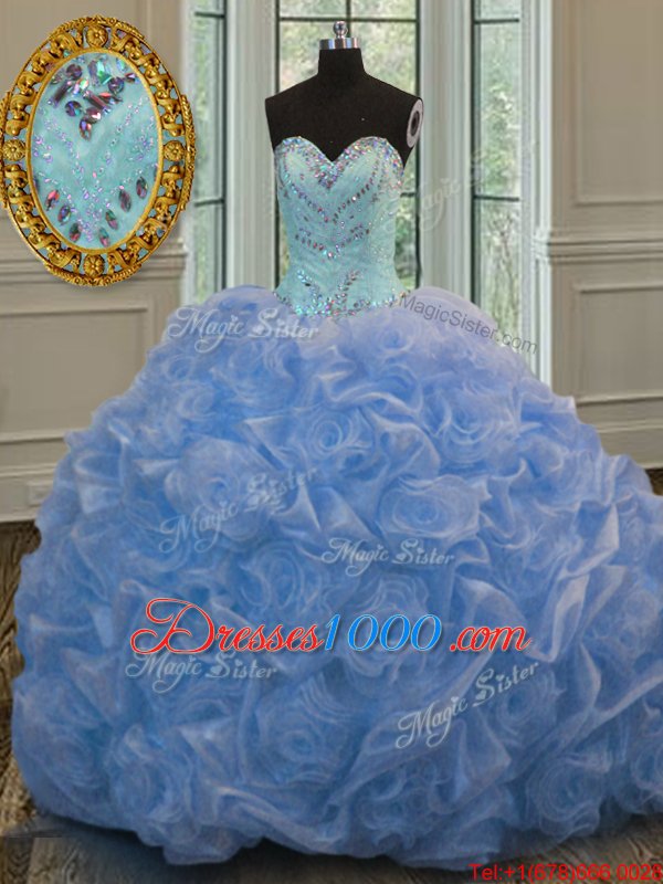 Baby Blue Organza Lace Up Sweetheart Sleeveless Floor Length 15th Birthday Dress Beading