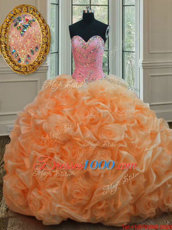 Orange Organza Lace Up Sweet 16 Dress Sleeveless Floor Length Beading