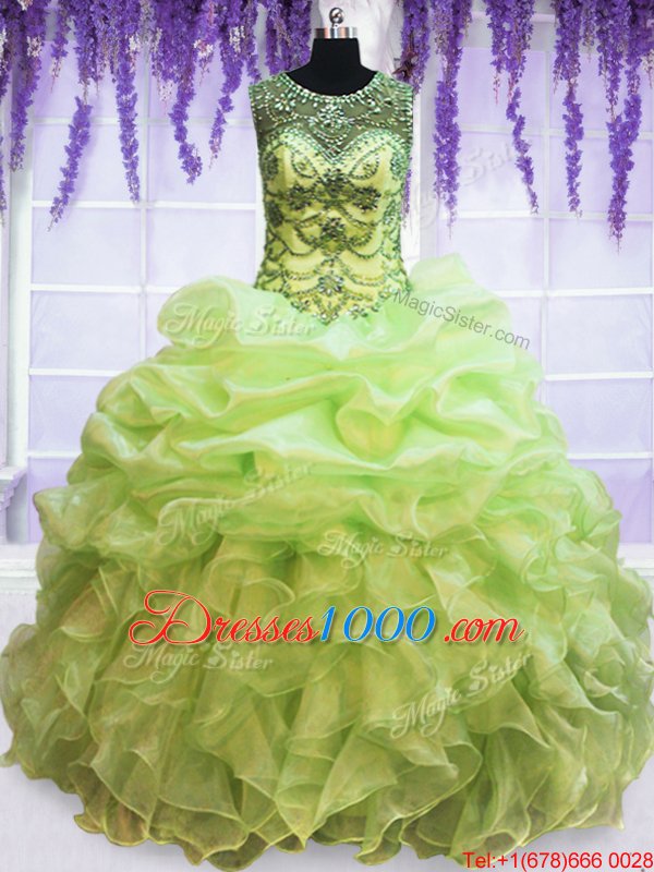 Pick Ups Scoop Sleeveless Lace Up 15th Birthday Dress Yellow Green Organza