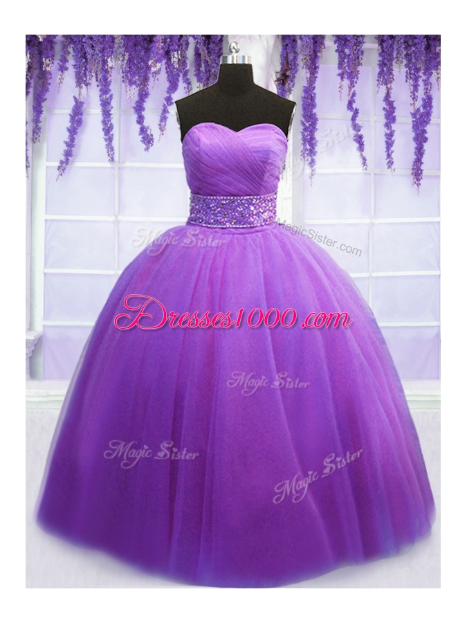Comfortable Floor Length Purple Sweet 16 Quinceanera Dress Tulle Sleeveless Belt