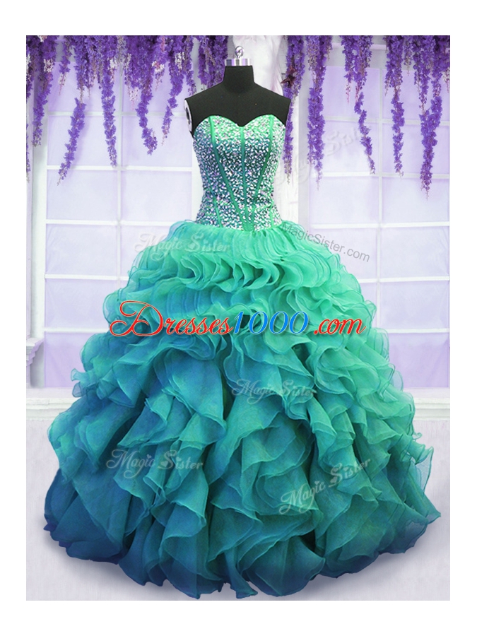 Cheap Floor Length Ball Gowns Sleeveless Turquoise Quinceanera Dresses Lace Up