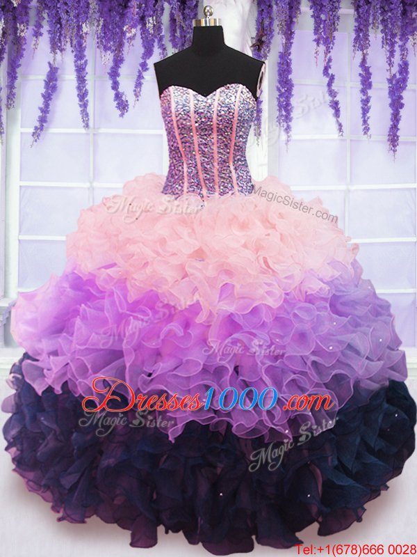 Ruffled Multi-color Sleeveless Organza Lace Up Quinceanera Gowns for Military Ball and Sweet 16 and Quinceanera