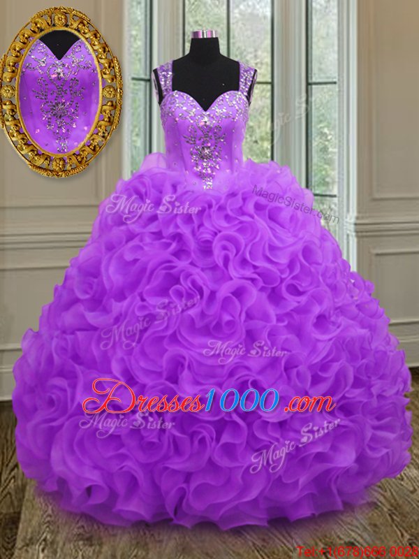 Traditional Purple Quince Ball Gowns Military Ball and Sweet 16 and Quinceanera and For with Beading and Ruffles Straps Sleeveless Zipper