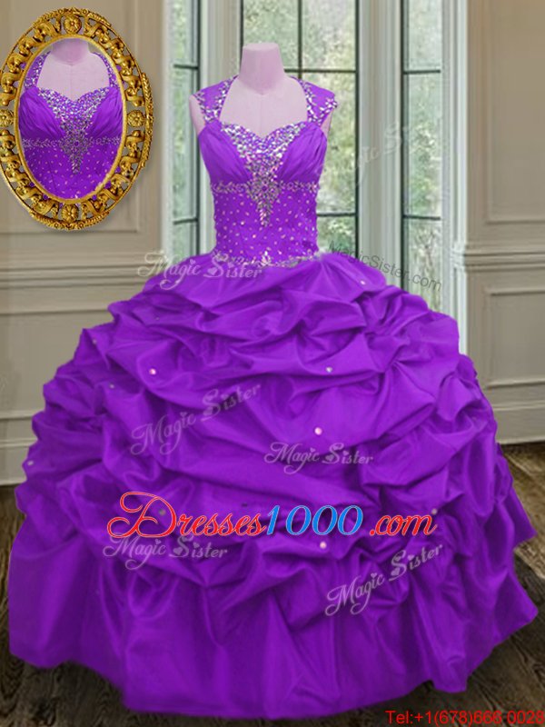 Straps Straps Beading and Pick Ups Quinceanera Dress Purple Lace Up Sleeveless Floor Length